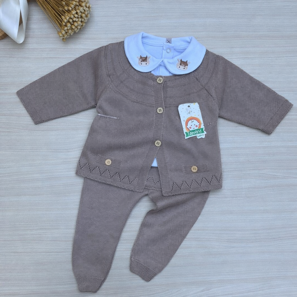 O Conjunto Menina Ingrid Tamine 3 Peças é ideal para compor looks delicados, confortáveis e elegantes para os primeiros momentos do bebê. Produzido em tricot macio e de alta qualidade, oferece toque suave, excelente caimento e conforto térmico na medida certa. Um conjunto versátil, perfeito para passeios, visitas e ocasiões especiais, garantindo charme, aconchego e praticidade no dia a dia.