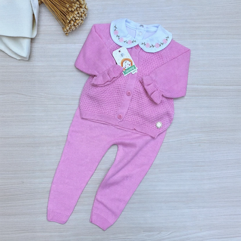 O Conjunto Calça e Casaco Menina Soraia Tamine 3 Peças foi desenvolvido para oferecer conforto, delicadeza e elegância nos primeiros meses da bebê. Confeccionado em tricot macio e de alta qualidade, proporciona toque suave, excelente caimento e proteção térmica na medida certa para a pele sensível do recém-nascido.