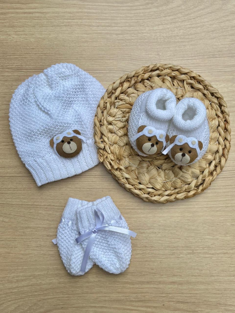 O Kit Menino Ursinho Aviador – Dinhos Baby foi pensado para os primeiros dias do bebê, unindo delicadeza, charme e ótimo acabamento. Confeccionado em tricot macio, proporciona ajuste confortável e visual encantador inspirado no tema ursinho aviador.
