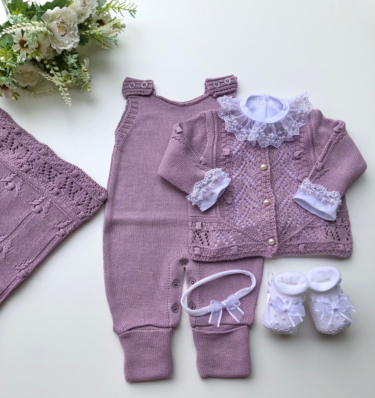 Elegância e muito charme para vestir a sua menina! A Saída Maternidade Tricot Casaquinho traz um toque romântico para momentos especiais com a pequena! O conjunto é confeccionado em tricot, somando o máximo de aconchego e conforto, sem abrir mão da sofisticação. Sua princesa vai ficar linda nas primeiras fotos com essa roupinha delicada exclusiva.