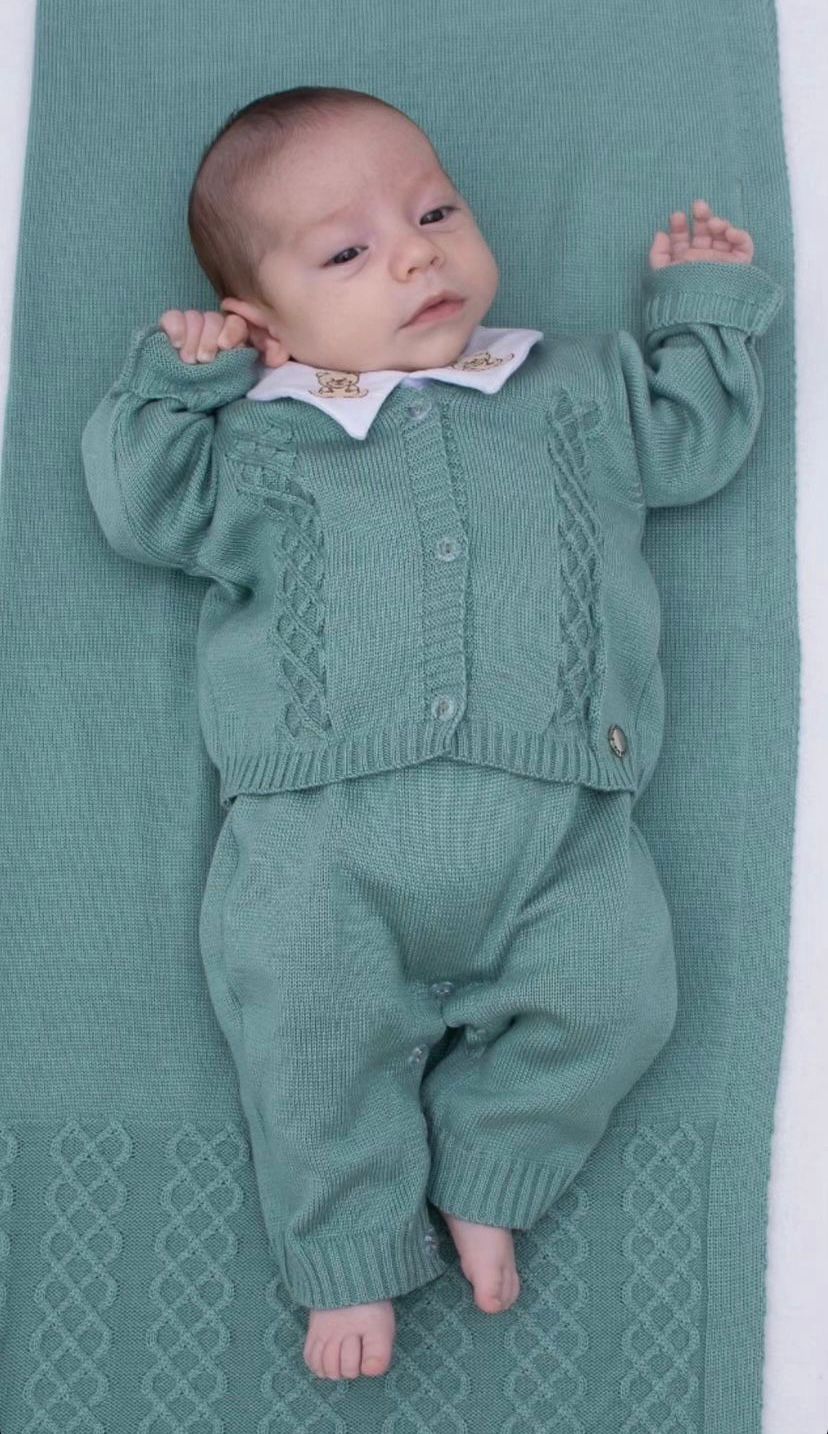 Saída de Maternidade Confeccionada em linha 100% acrílico que é ideal para o bebê pois é totalmente antialérgica, a linha mais indicada para recém nasacidos!