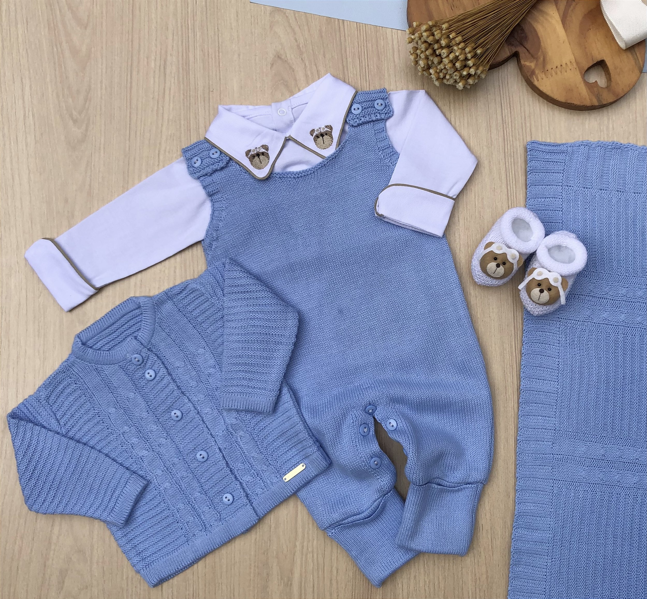 Combinação mais que perfeita! A Saída Maternidade Tricot Casaquinho traz um toque clássico para momentos especiais com o seu bebê! O conjunto é confeccionado em tricot, somando o máximo de aconchego e conforto, sem abrir mão da sofisticação. Seu amor vai ficar mais lindo nas primeiras fotos com essa roupinha delicada e a mantinha exclusiva.