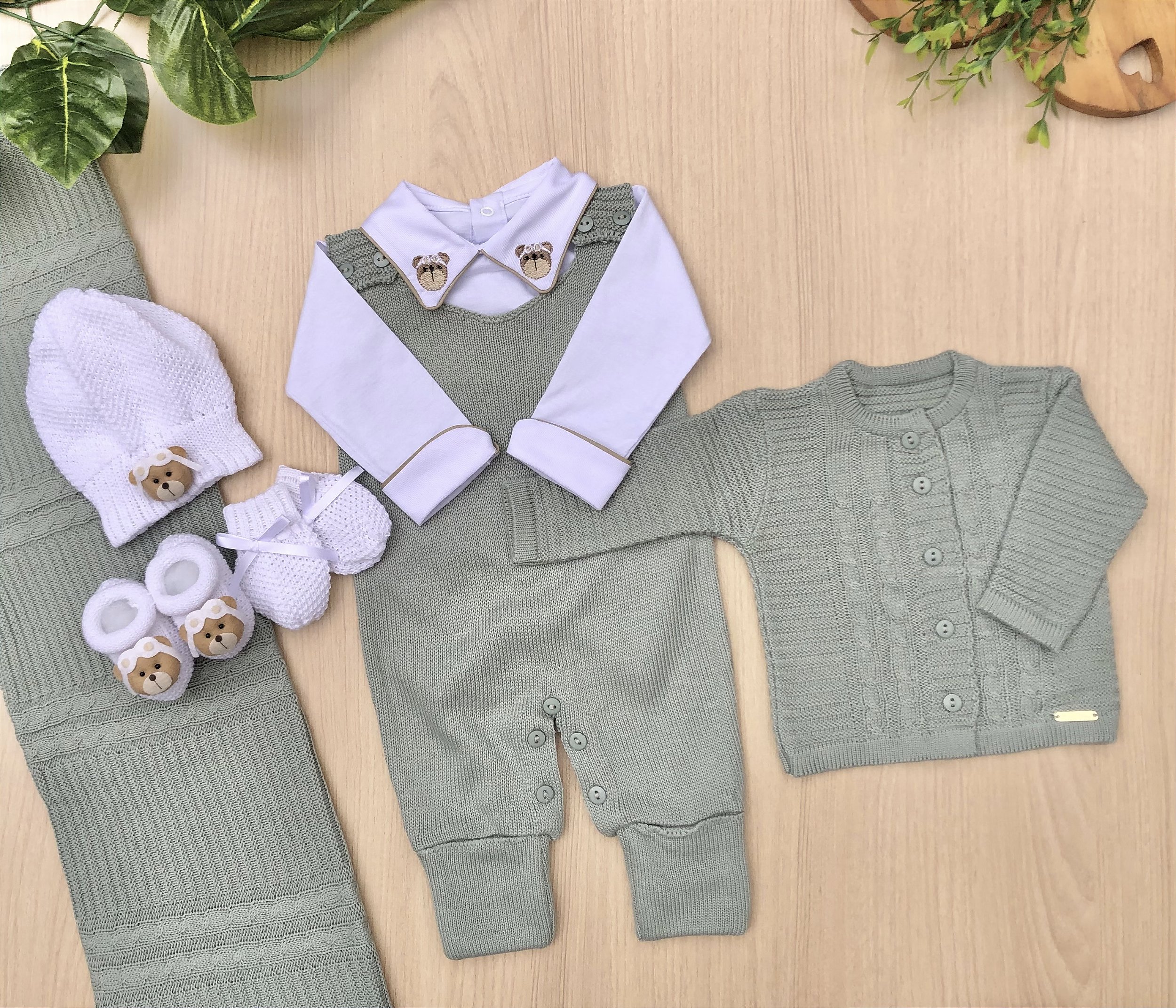 Saída de maternidade Macacão Alex Urso Aviador Menino 7 peças