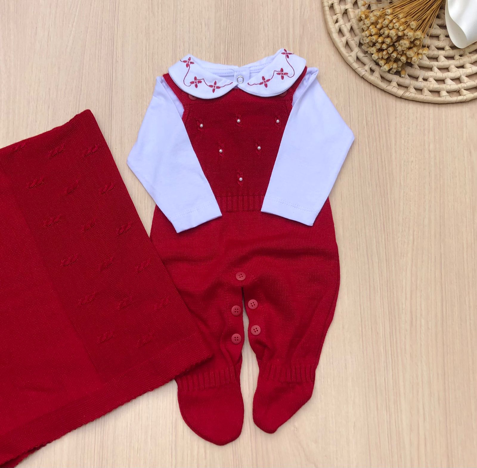 Celebre o nascimento da sua princesa com essa encantadora saída de maternidade confeccionada em tricot macio e antialérgico, perfeita para oferecer conforto e estilo desde o primeiro dia de vida.