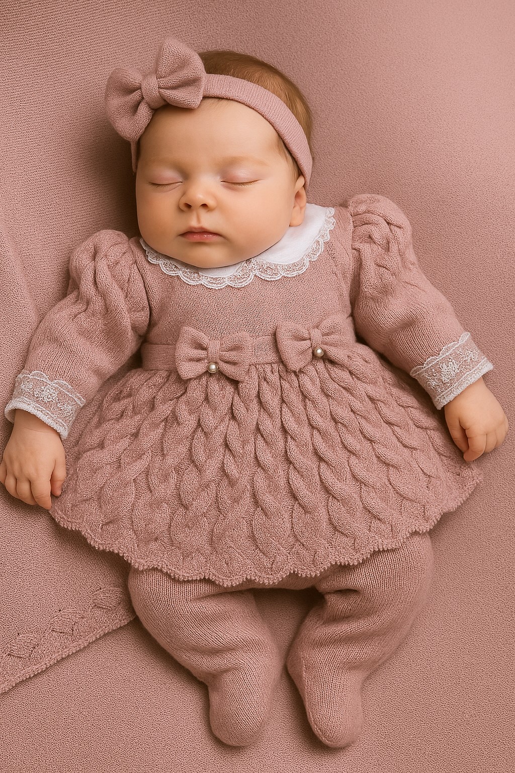 Saída maternidade de menina vestido bufante em tricot, modelo lindo para a sua princesinha se vestir com amor, pode usar também para batizado!