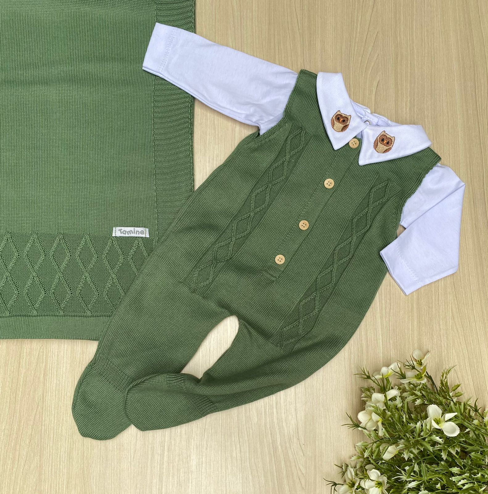 Com elegância e doçura, a Saída Maternidade Tricot Augusto 3 Peças é aquele conjunto não pode faltar no enxoval do seu amor. Os itens são confeccionados com a delicadeza das tramas em Tricot com as cores da esperança e da paz!