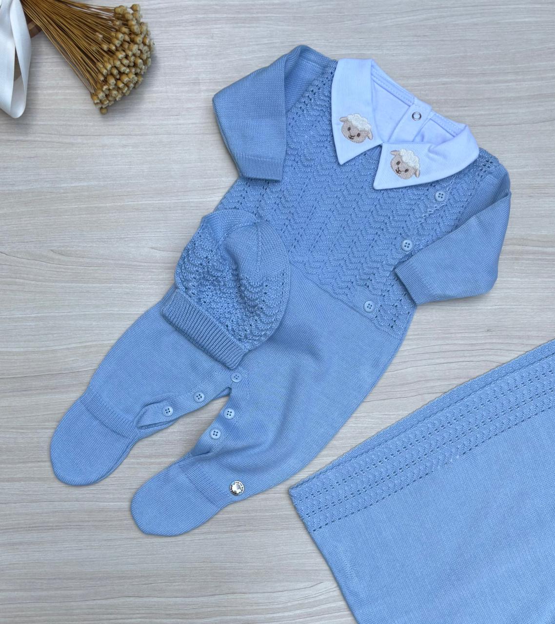 A Saída de Maternidade Menino Benjamin Tamine 4 Peças da Dinhos Baby foi desenvolvida para proporcionar conforto, delicadeza e excelente acabamento nos primeiros dias do bebê. Confeccionada em tricot macio e tecido suave, é ideal para maternidade, primeiros passeios e momentos especiais.