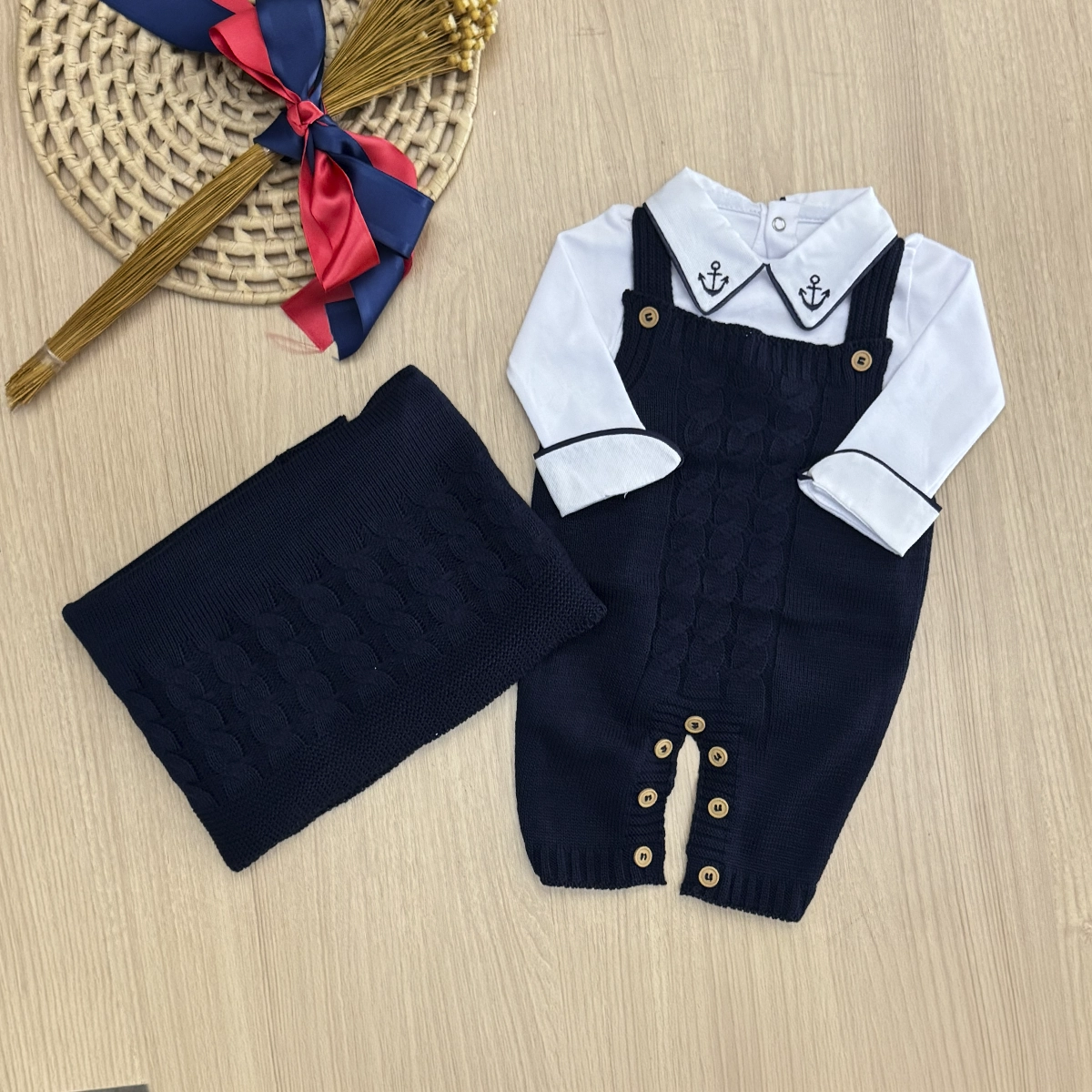 Que tal escolher um conjunto com o aconchego clássico do tricot e uma proposta elegante para os primeiros dias do bebê? Esse é o mood da Saída Maternidade Tricot Conjunto Clássico Jardineira.