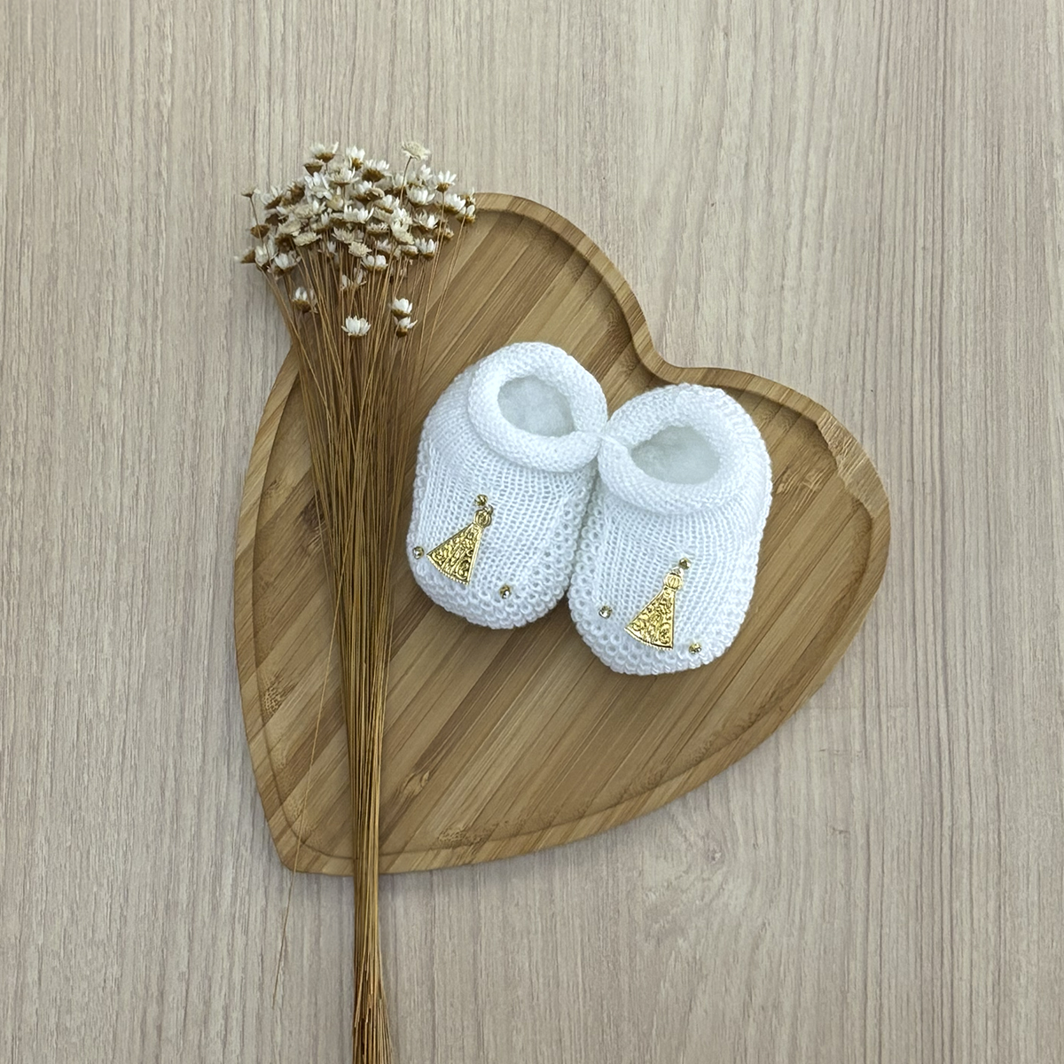 O sapatinho de bebê Dinhos Baby foi pensado para trazer delicadeza, significado e muito conforto nesse dia único. Com acabamento em tricô macio e detalhe religioso aplicado, ele é ideal para compor o look do batizado com elegância e cuidado em cada detalhe.